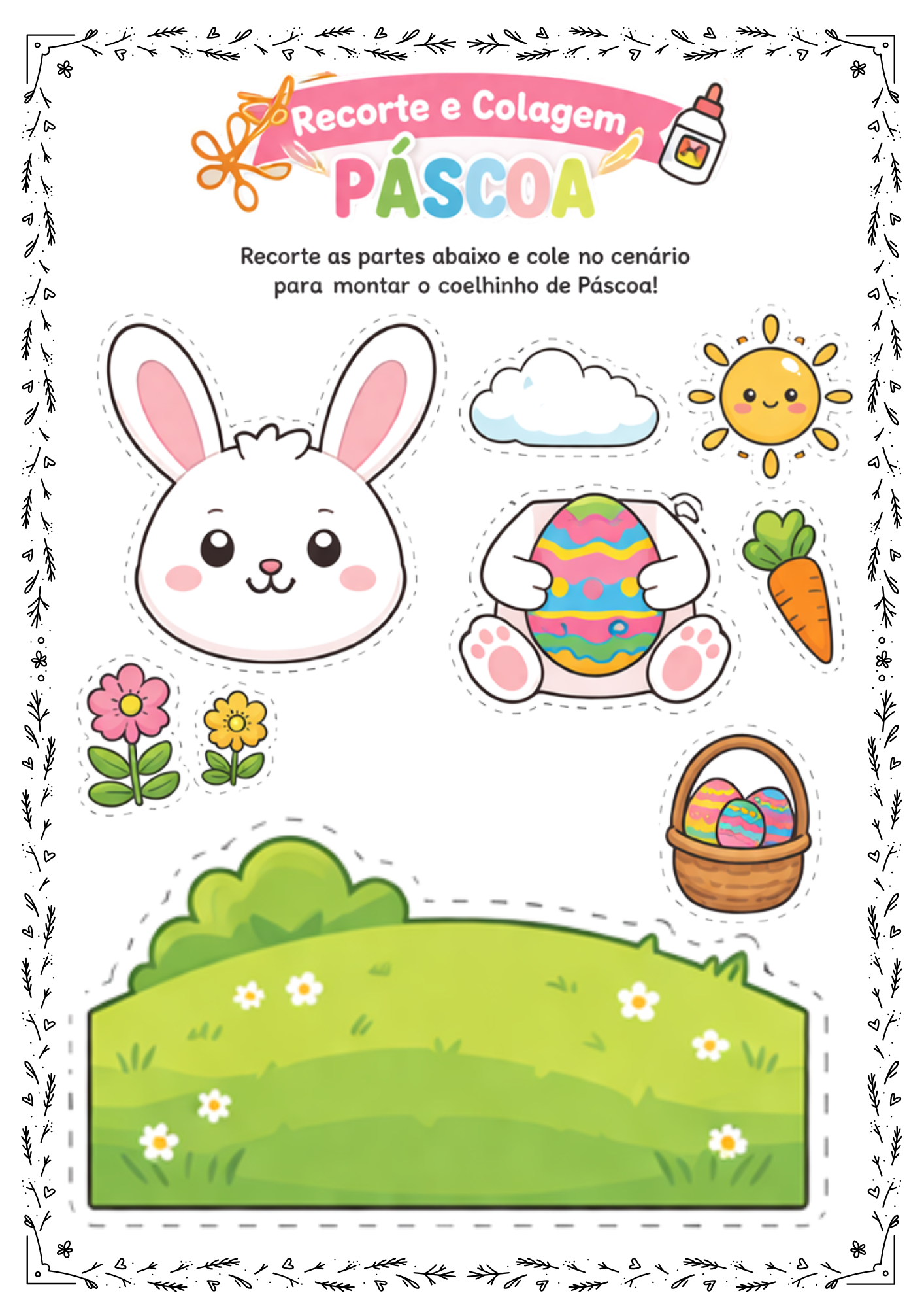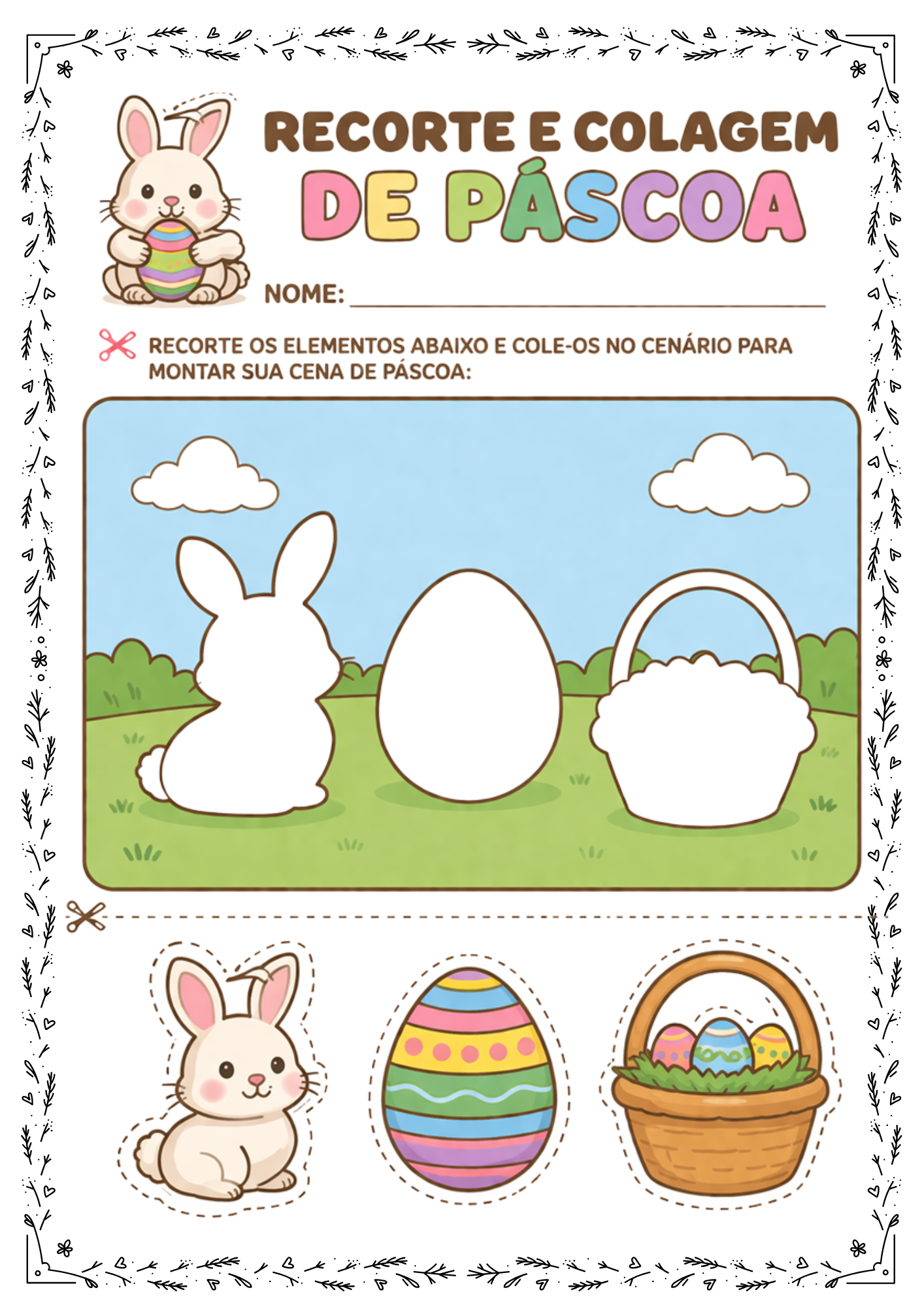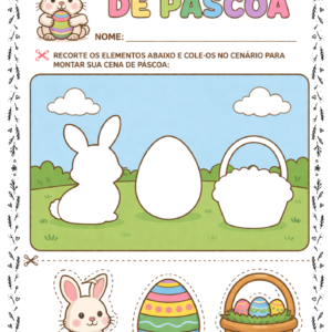 Com esta atividade, as crianças irão recortar, organizar e montar uma linda cena de Páscoa, desenvolvendo habilidades essenciais de forma leve e criativa.