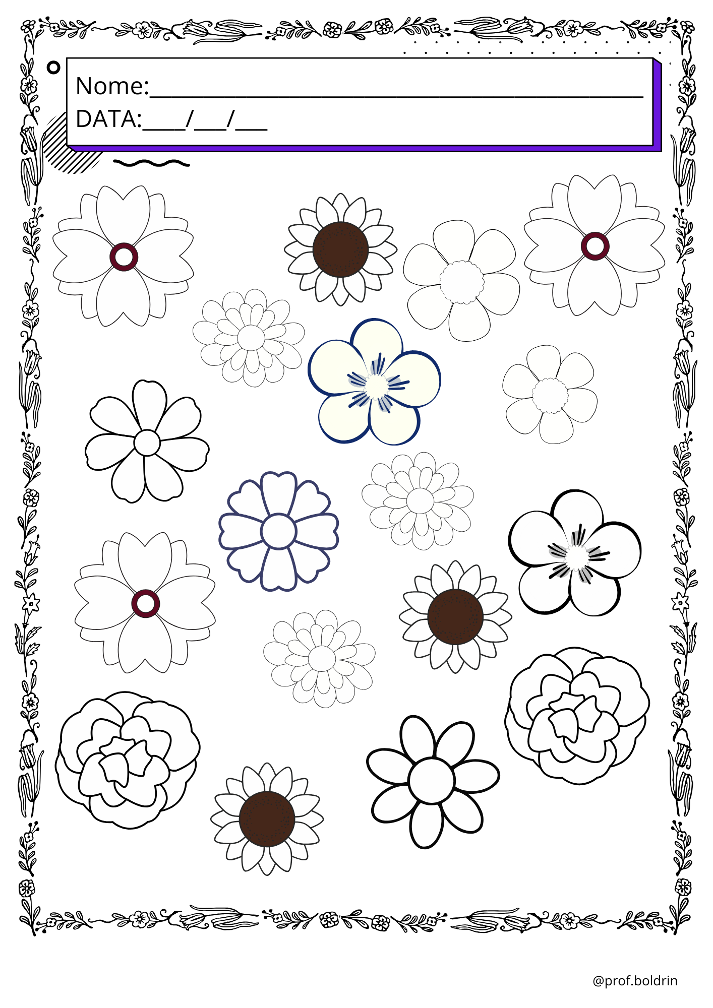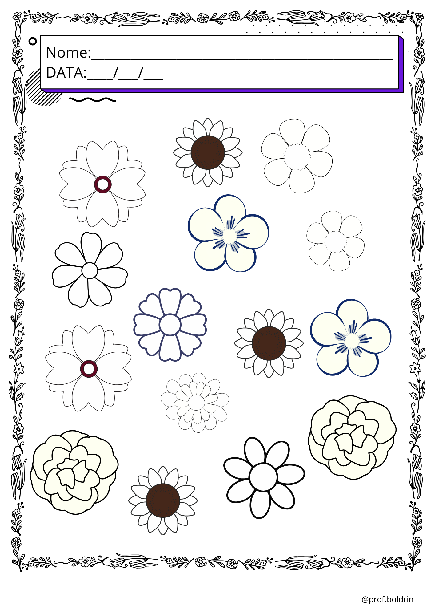 ✔️ Flores em versão preto e branco para os alunos pintarem