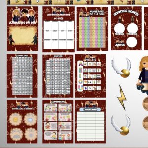 Encante seus alunos e transforme a rotina escolar em uma experiência mágica! O Kit Sala de Aula Harry Potter foi desenvolvido para deixar o ambiente mais acolhedor, organizado e visualmente estimulante, tornando o aprendizado ainda mais envolvente.