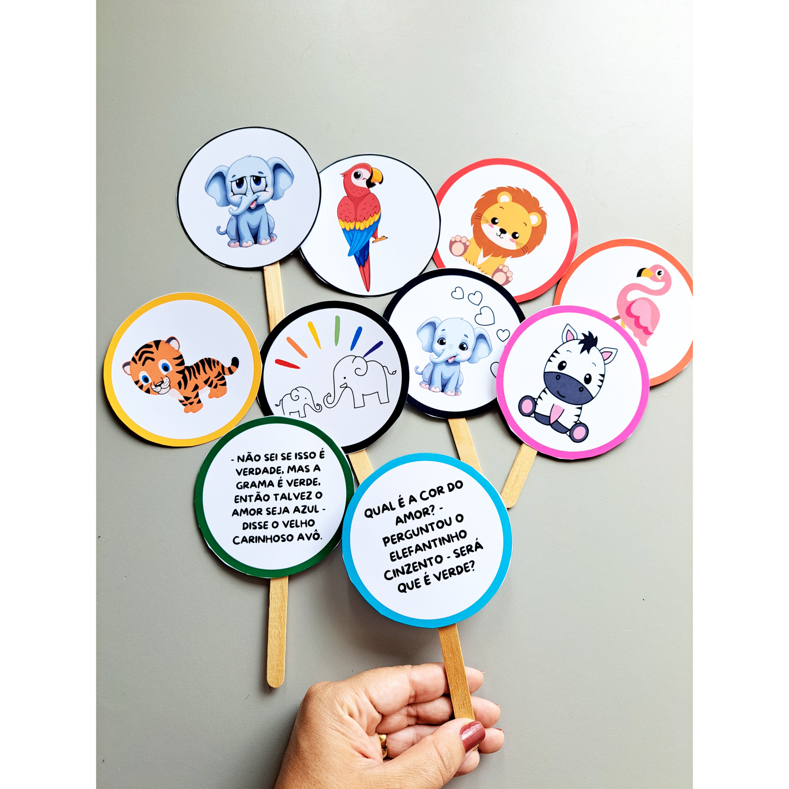 Este material em PDF traz palitoches dos personagens animais, perfeitos para contação de histórias e atividades lúdicas na Educação Infantil.